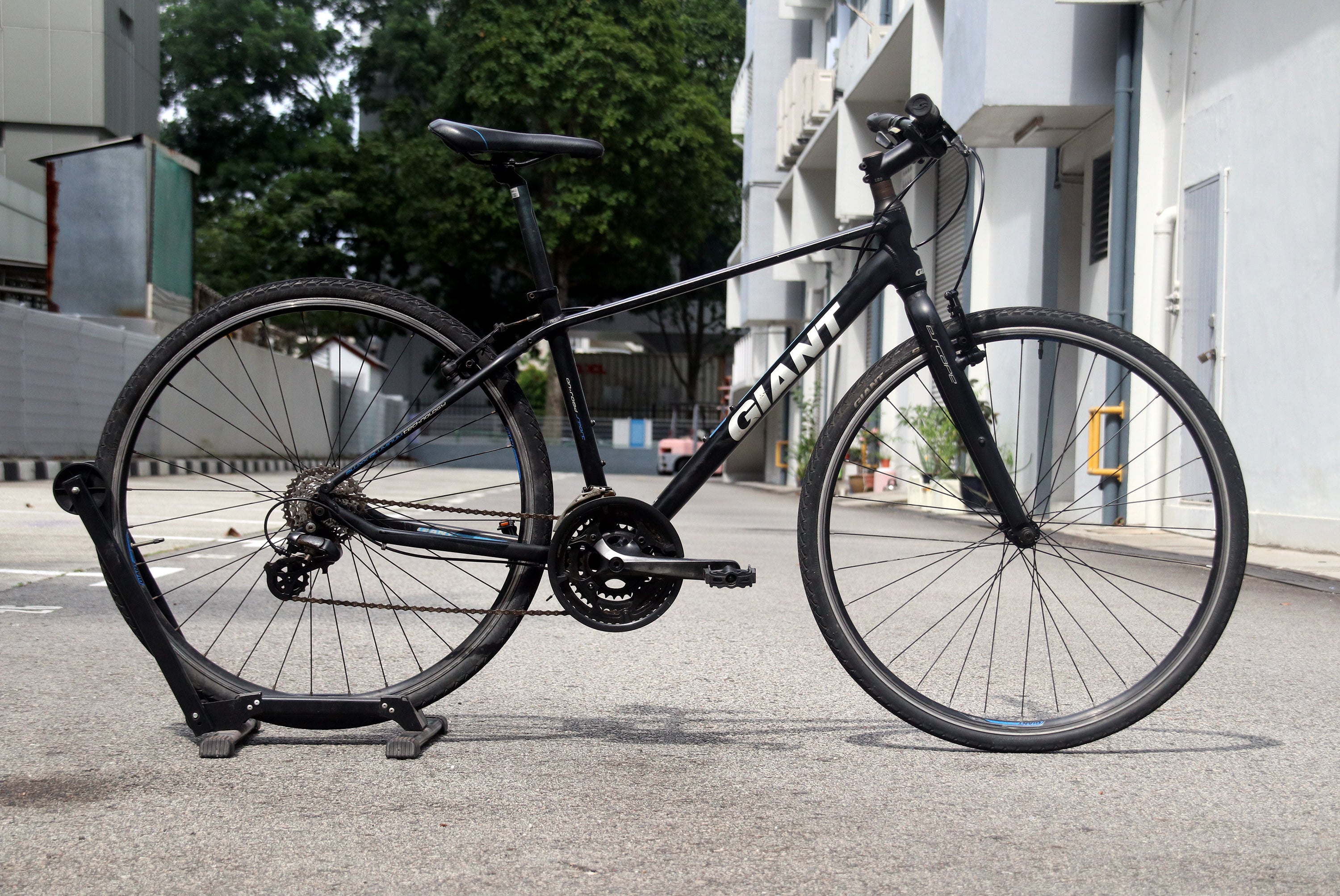 The Giant Escape is a popular flat‑bar hybrid/fitness bike designed to be a comfortable, versatile ride for everyday use. It blends the agility of a road‑style bike with the comfort and practicality of a commuter, making it an excellent choice for fitness rides, commuting, errands, and general leisure cycling.