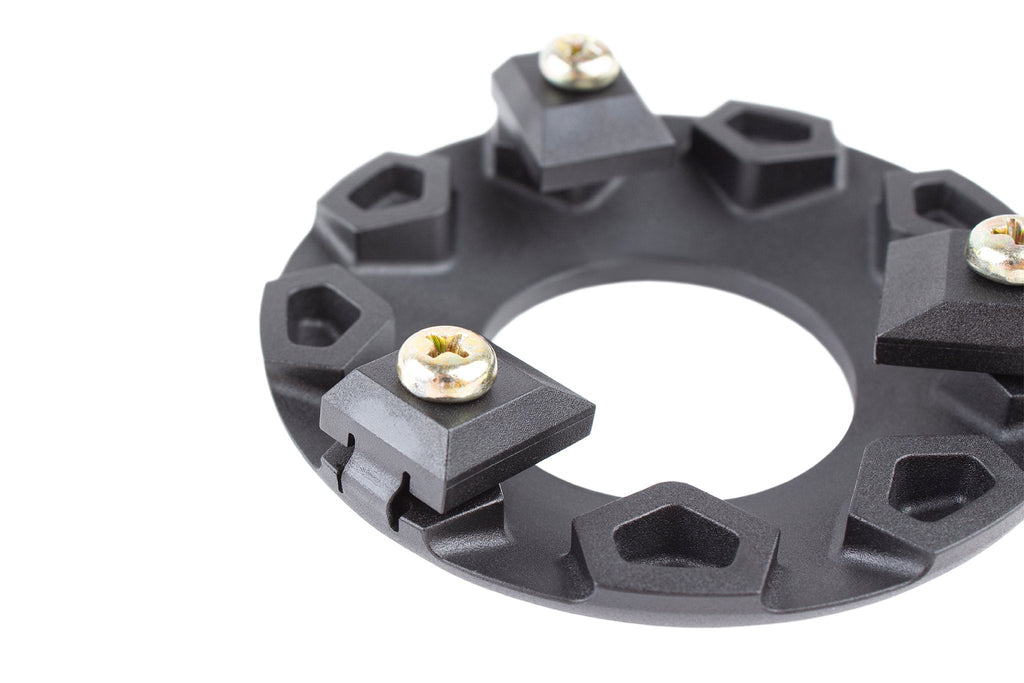 The G.L.A.N.D. MKV builds on this hub guard's long-running history of protecting the spokes and hub while using the strength of the wheel lacing for structural support. The G.L.A.N.D. is made from proprietary plastic to keep the weight low and to spread impacts evenly while grinding - with as little resistance as possible.